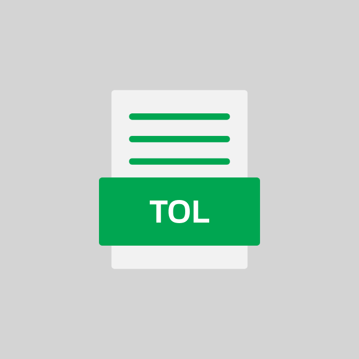 TOL Dateien zeichnen sich durch die Verwendung der Endung ".tol" nach dem Dateinamen aus. TOLs können angezeigt werden, wenn man die Informationen in einem organisierten Textformat anzeigt. Dateien mit ähnlichen Funktionen sind das IMG, ISO, PAK, VHD, CDI, und NRG.